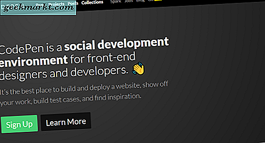 Codepen kaller seg 'lekeplassen for fronten-siden av nettet'. Det er en av de online JavaScript IDE jeg nevnte ovenfor og er veldig bra på hva det gjør. Det spiller pent med HTML, CSS og JavaScript, og fungerer med CoffeeScript eller LiveScript. Det er nyttig både for nybegynnere som ønsker å lære kode og få den gjennomgått av jevnaldrende, men også erfarne kodere som vil bygge i et levende forhåndsvisningsmiljø.