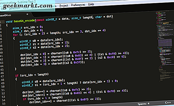 Andre funksjoner i Atom inkluderer automatisk fullføring, filbrowser, finne og erstatte, automatisk lukkede koder og et nyttig mini kart som viser deg koden din i en oversikt. Atom har en tendens til å bremse ned når du jobber med større filer og har tilsynelatende en hukommelselekkasje som kan forårsake forsinkelse når du bruker den. Annet enn det, er det veldig høyt ansett.