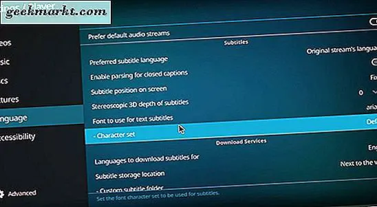 Det er fire hovedinnstillinger vi må se for å forandre innsiden av Kodi. Disse innstillingene vil tillate at Kodi-enheten din på riktig måte viser undertekster avhengig av din egen personlige preferanse for å laste dem inn i videofôrene dine.