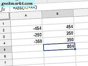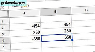 Den absolutte verdien av et tall er hvor langt det er fra null. For eksempel er den absolutte verdien av 454 454! Imidlertid er absoluttverdier for negative tall også positive tall. Således er absolutt verdien av -454 også 454. Så Google Sheets-brukere må konvertere minus tall til positive for å legge til absolutte verdier i regnearkene sine.