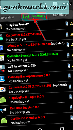 Når du har lastet ned Titanium Backup, åpner du appen og velger Backup / Restore.