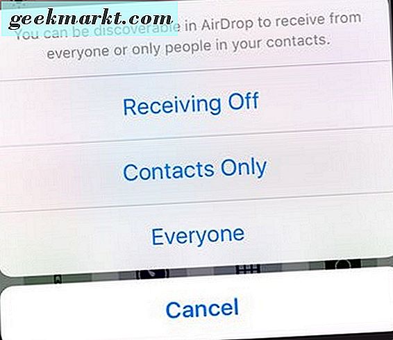 - Sveip opp i iOS og velg Airdrop. Velg Av, Kun Kontakter eller Alle. Hvis du bor i ditt eget hjem, er alle innstillinger den som har minst konfigurasjonsproblemer.